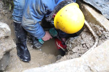 因漏水量大,工作人員來(lái)不及更換雨鞋就緊急關(guān)閥止水,為了讓搶修速度更快,師傅們直接跳到1米多深的水泥坑里用鍬、鏟等各類工具開(kāi)挖漏點(diǎn);拆卸、安裝、焊接,一刻也不停歇;抽干積水,清理路面。大家分工協(xié)作,經(jīng)過(guò)四個(gè)小時(shí)的奮力搶修,終于維修完畢,開(kāi)閘通水。此時(shí),搶修人員的衣服、鞋子早已被水浸透,寒風(fēng)中,大家凍得瑟瑟發(fā)抖、雙手麻木通紅,但他們每個(gè)人的內(nèi)心都充滿了欣慰,因?yàn)樗麄冊(cè)谶@個(gè)飄雪團(tuán)圓的小年里,又一次用實(shí)際行動(dòng)給居民群眾送去了“放心水”。